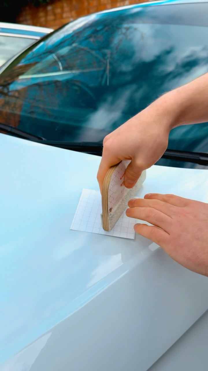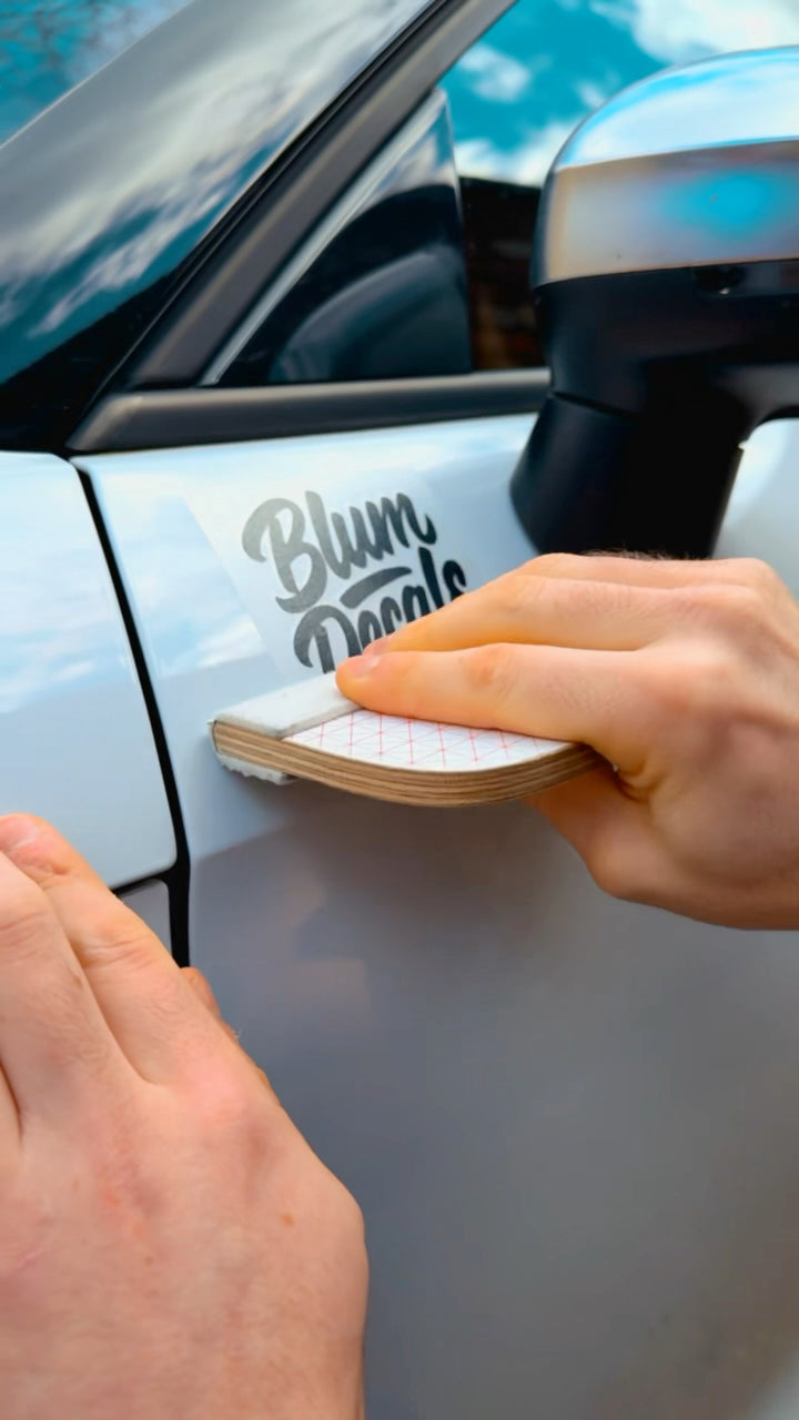 Use credit card or squeegee to smooth the decal onto the surface