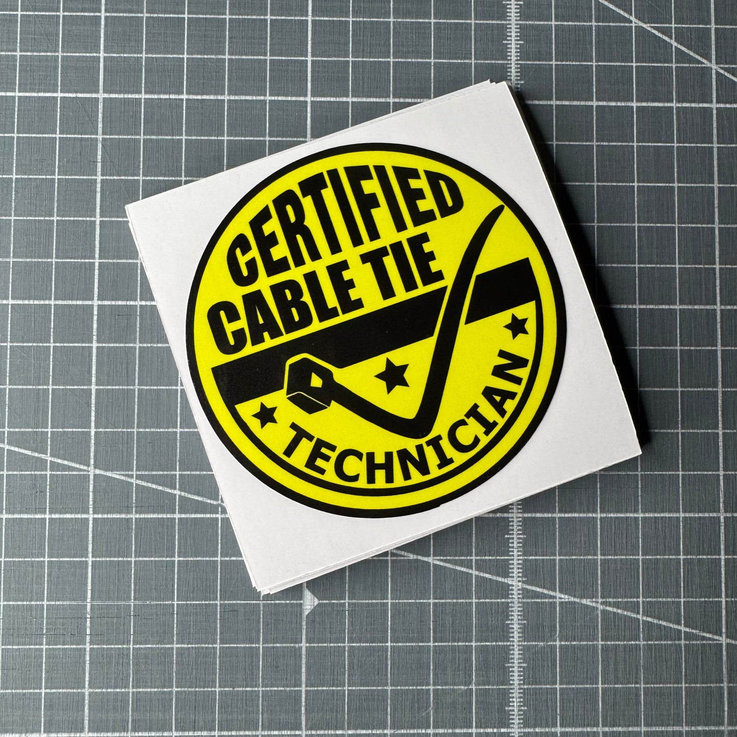 Certified Cable Tie Technician – Funny Vinyl Sticker (85mm x 85mm)
