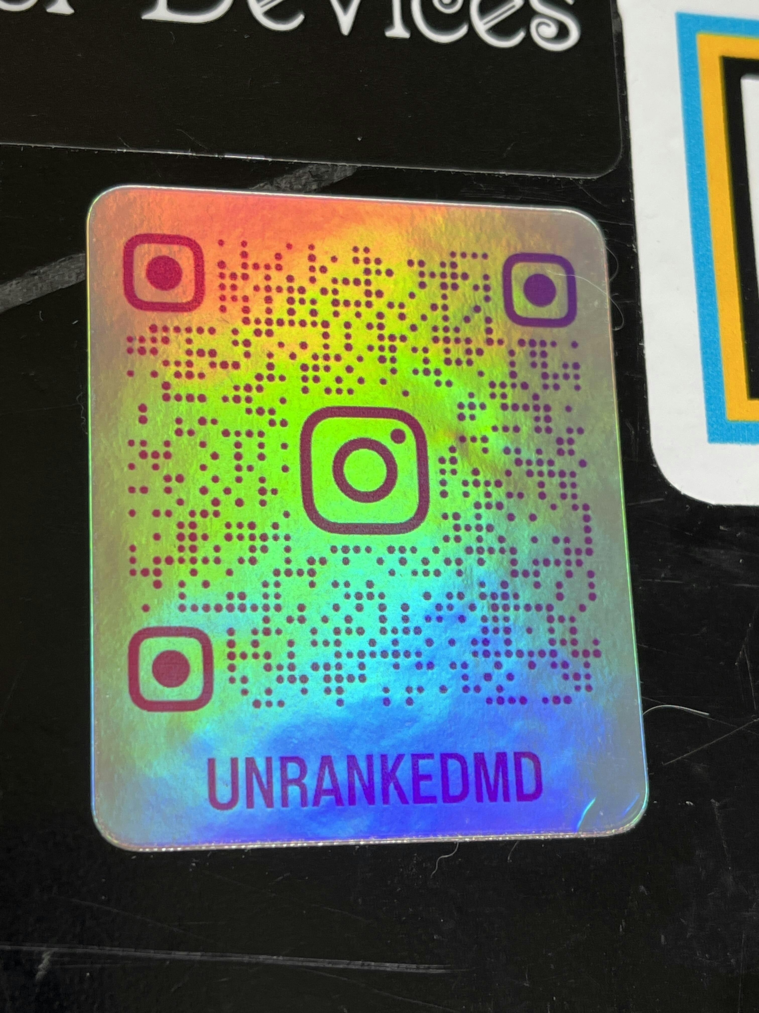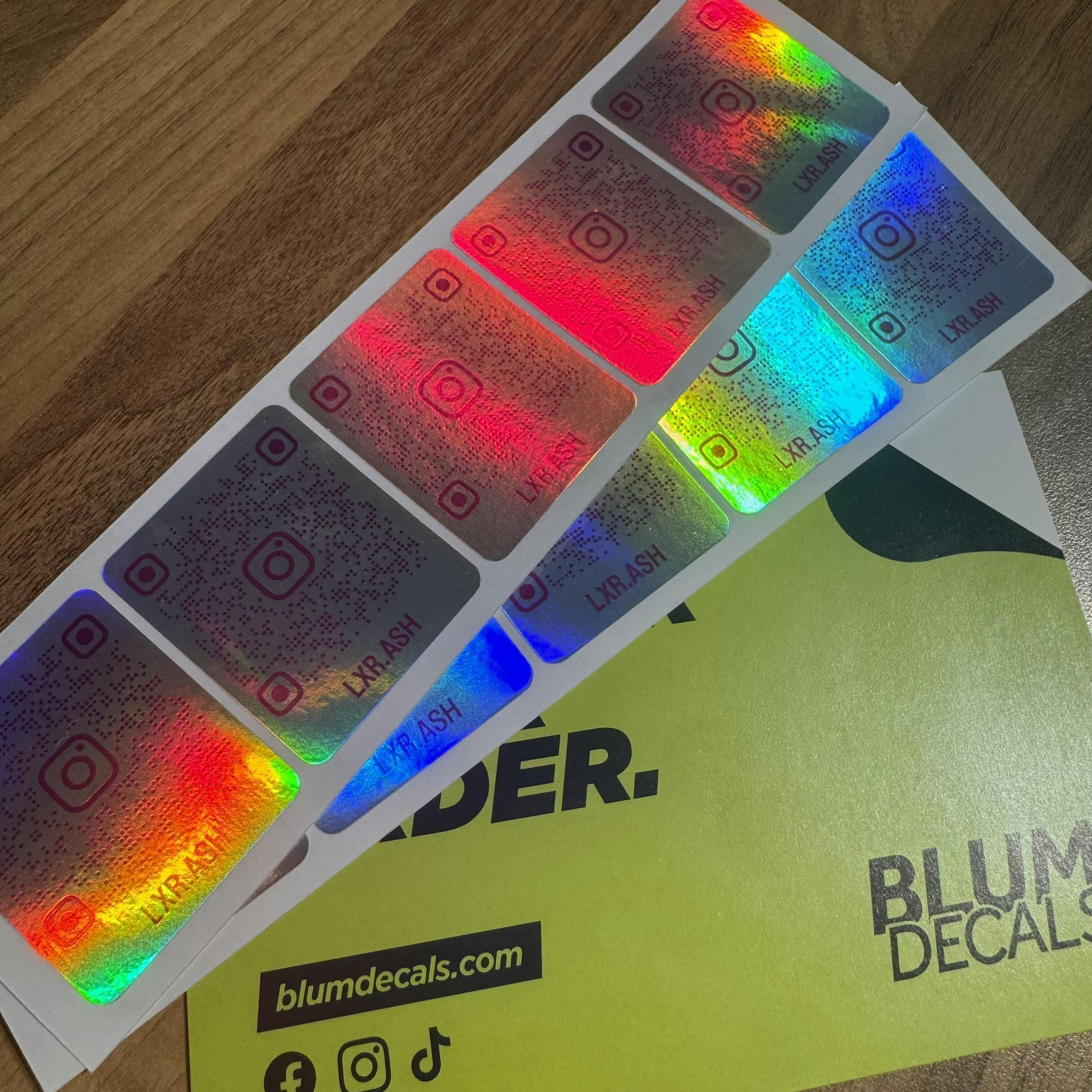 Custom printed Instagram QR code stickers are an excellent way to market and connect with potential clients via social media. They can be used in a wide variety of ways, mailing envelopes, product packaging and vehicles to name a few. Self-adhesive Holographic vinyl stickers can be applied to any HARD, SMOOTH surface - glass, plastic etc. Notice: NOT SUITABLE FOR FABRIC or TEXTURED surfaces.