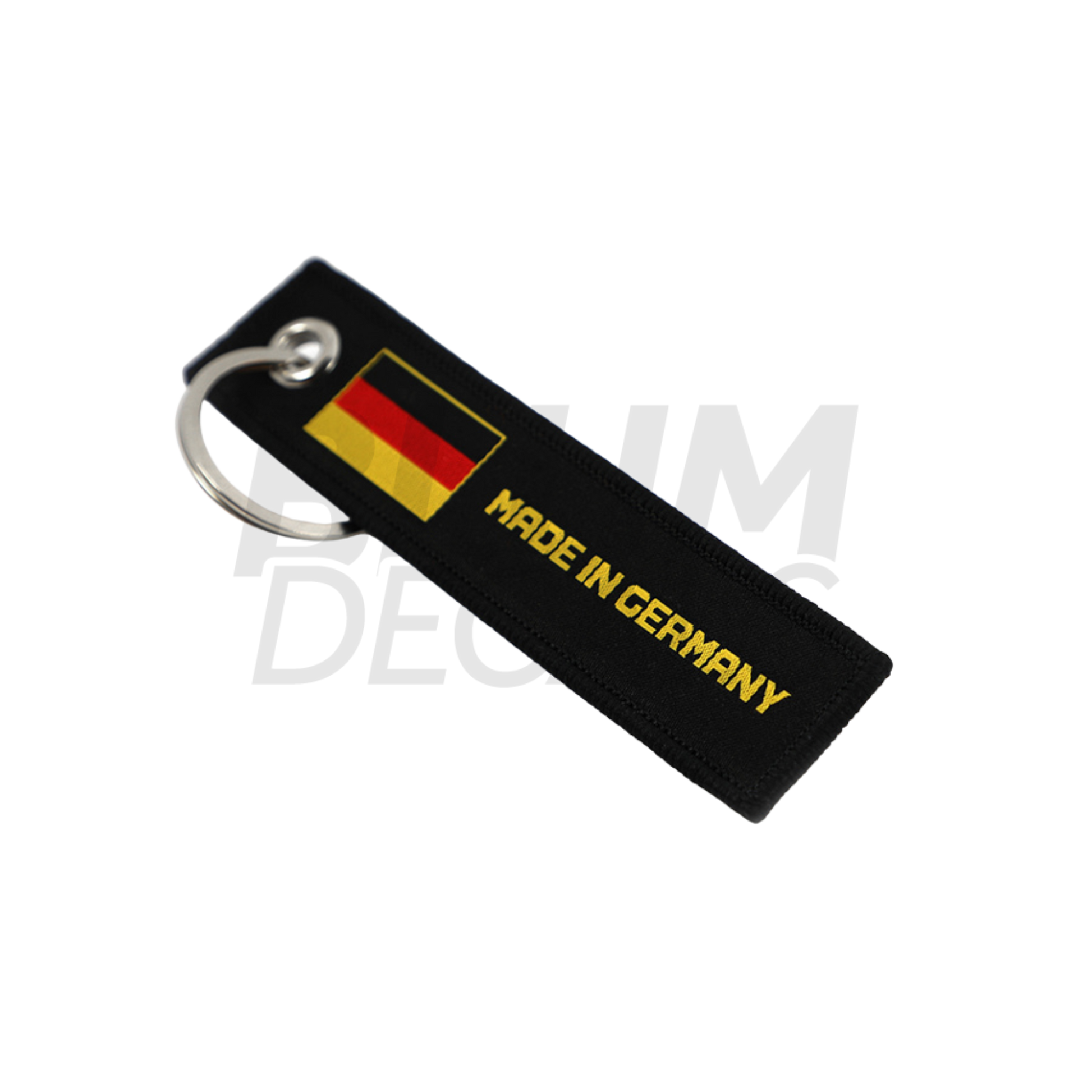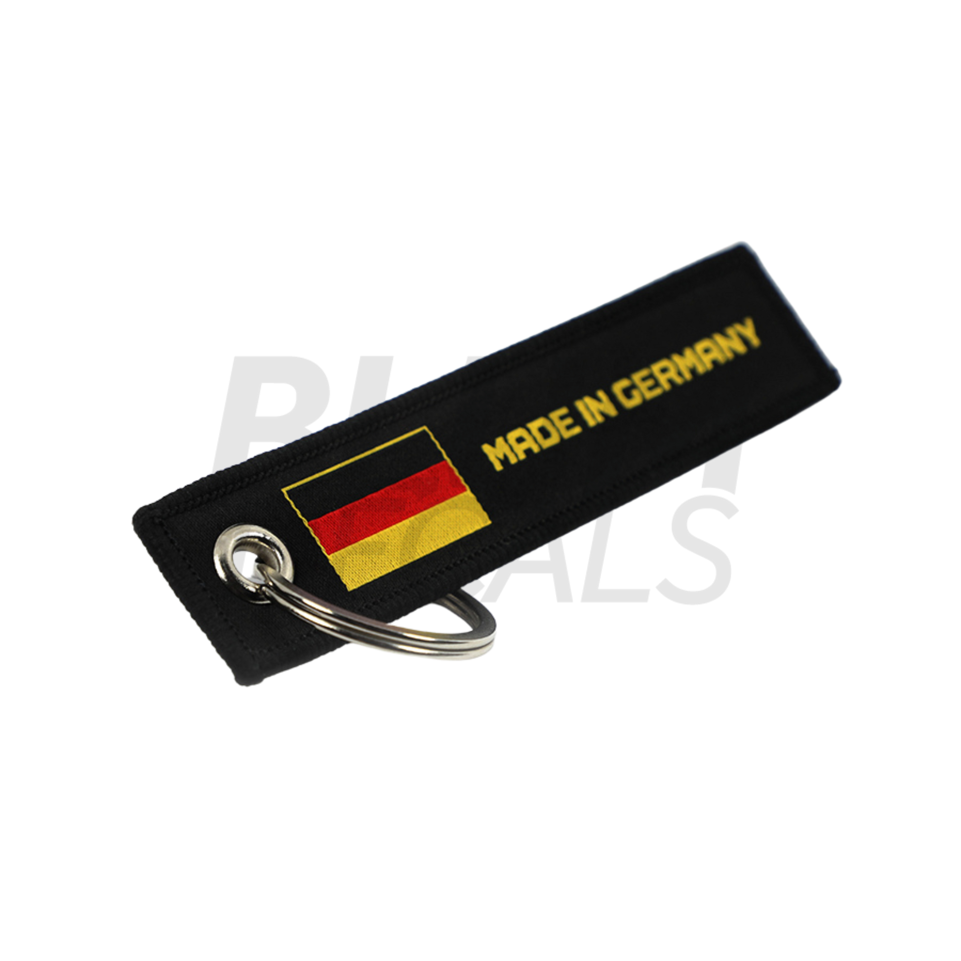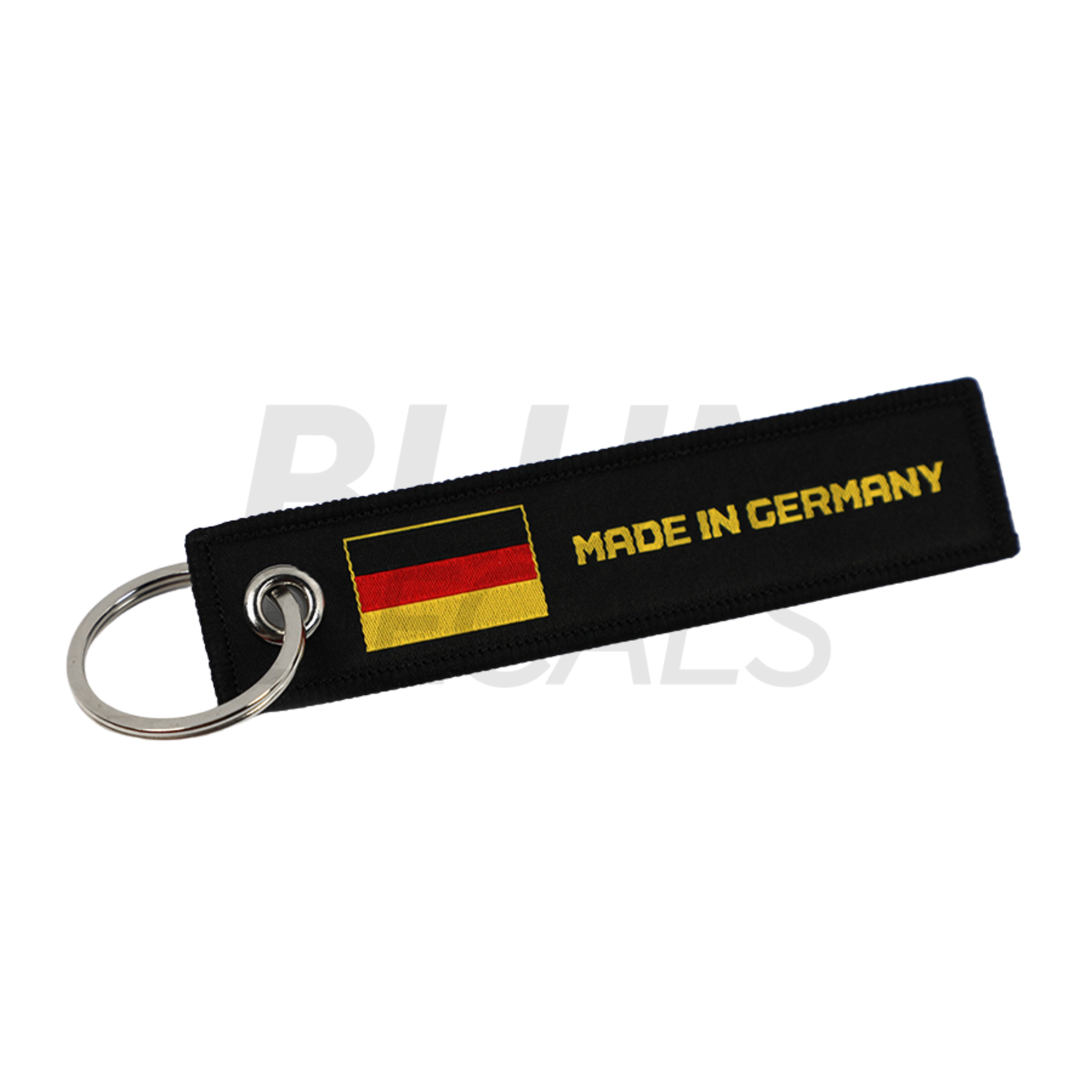 Premium Jet Tag Keychain with embroidered "Made In Germany" text.