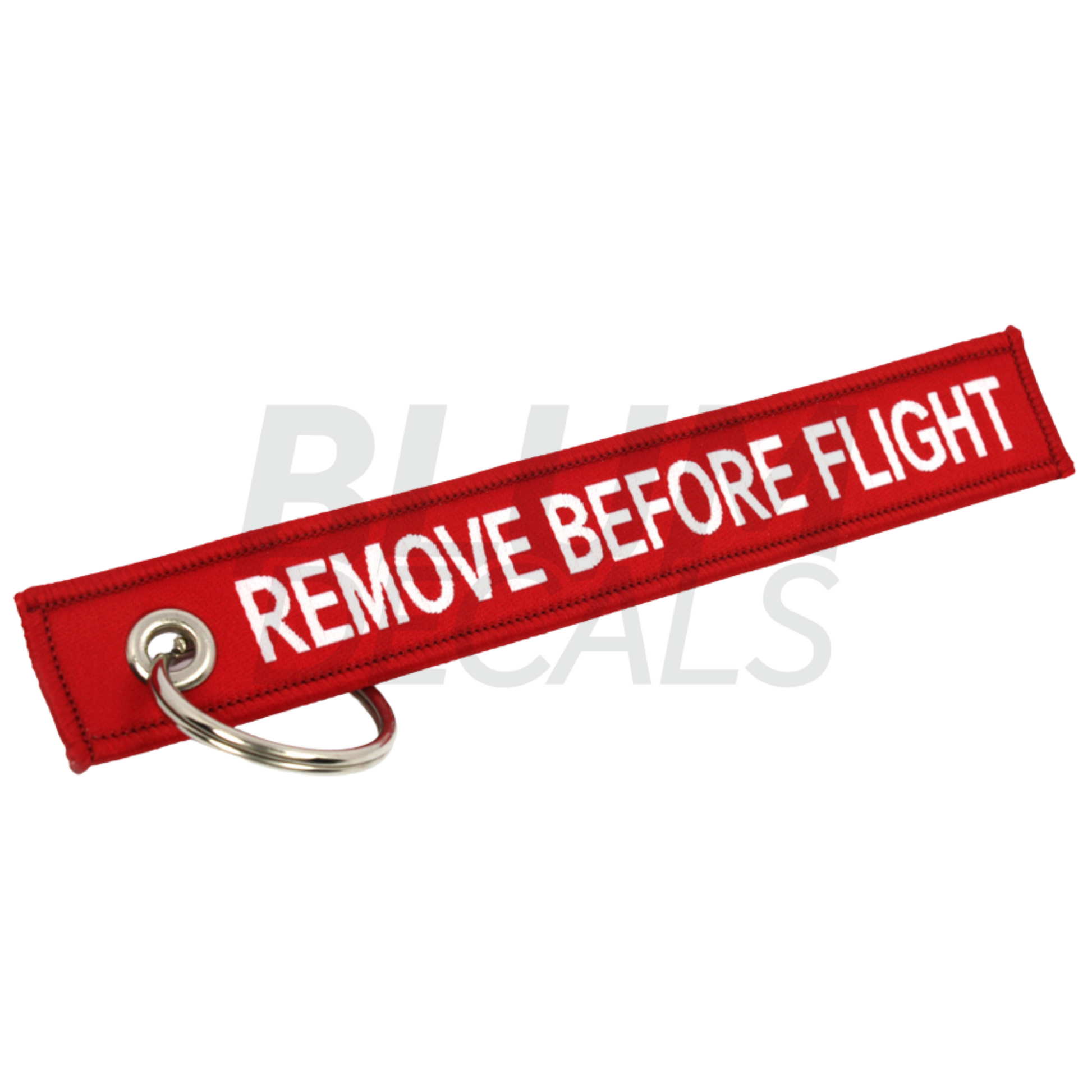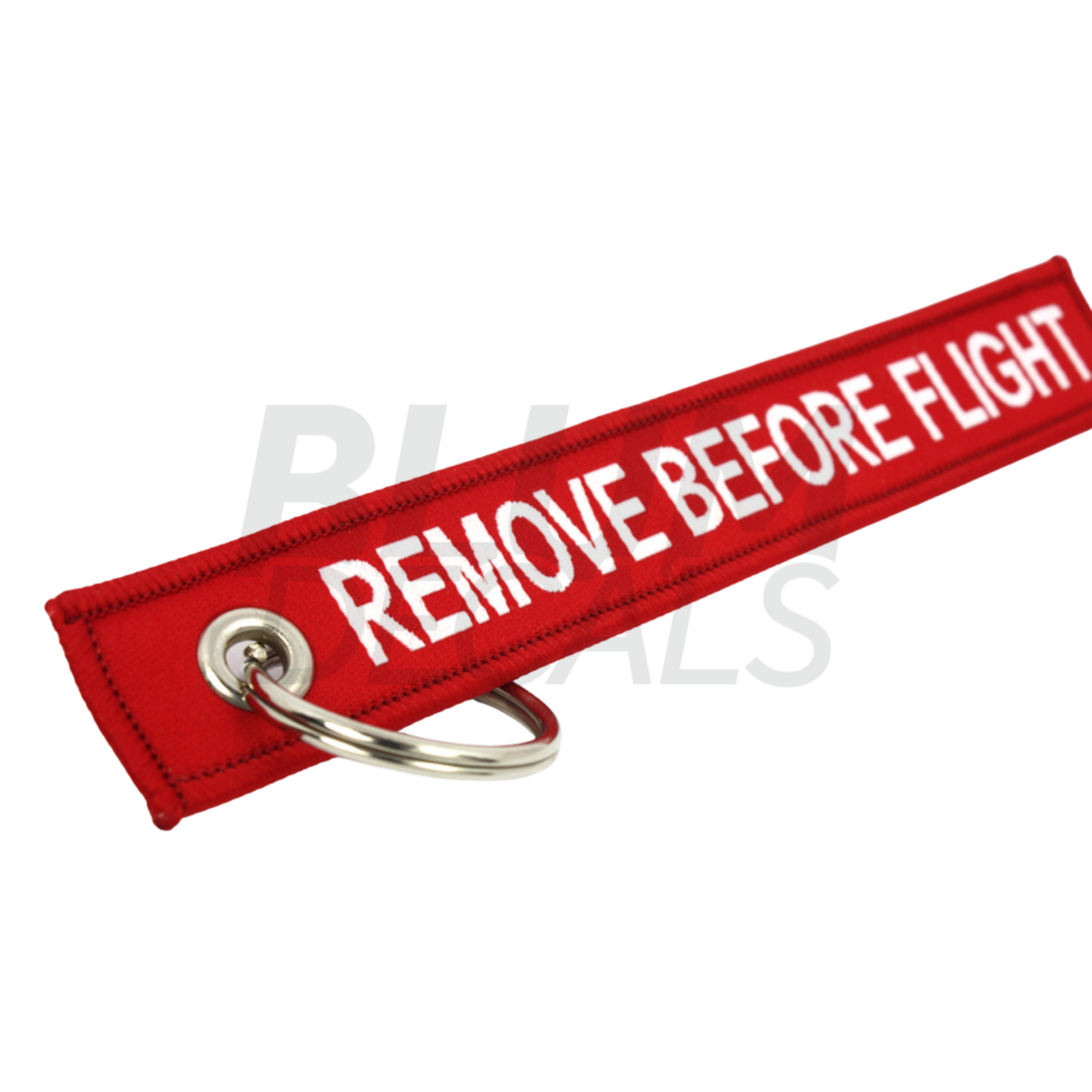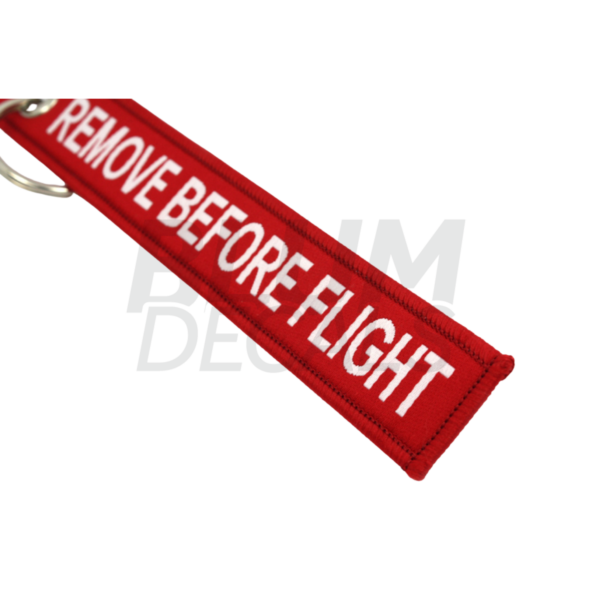 Premium Jet Tag Keychain with embroidered "Remove Before Flight" text.